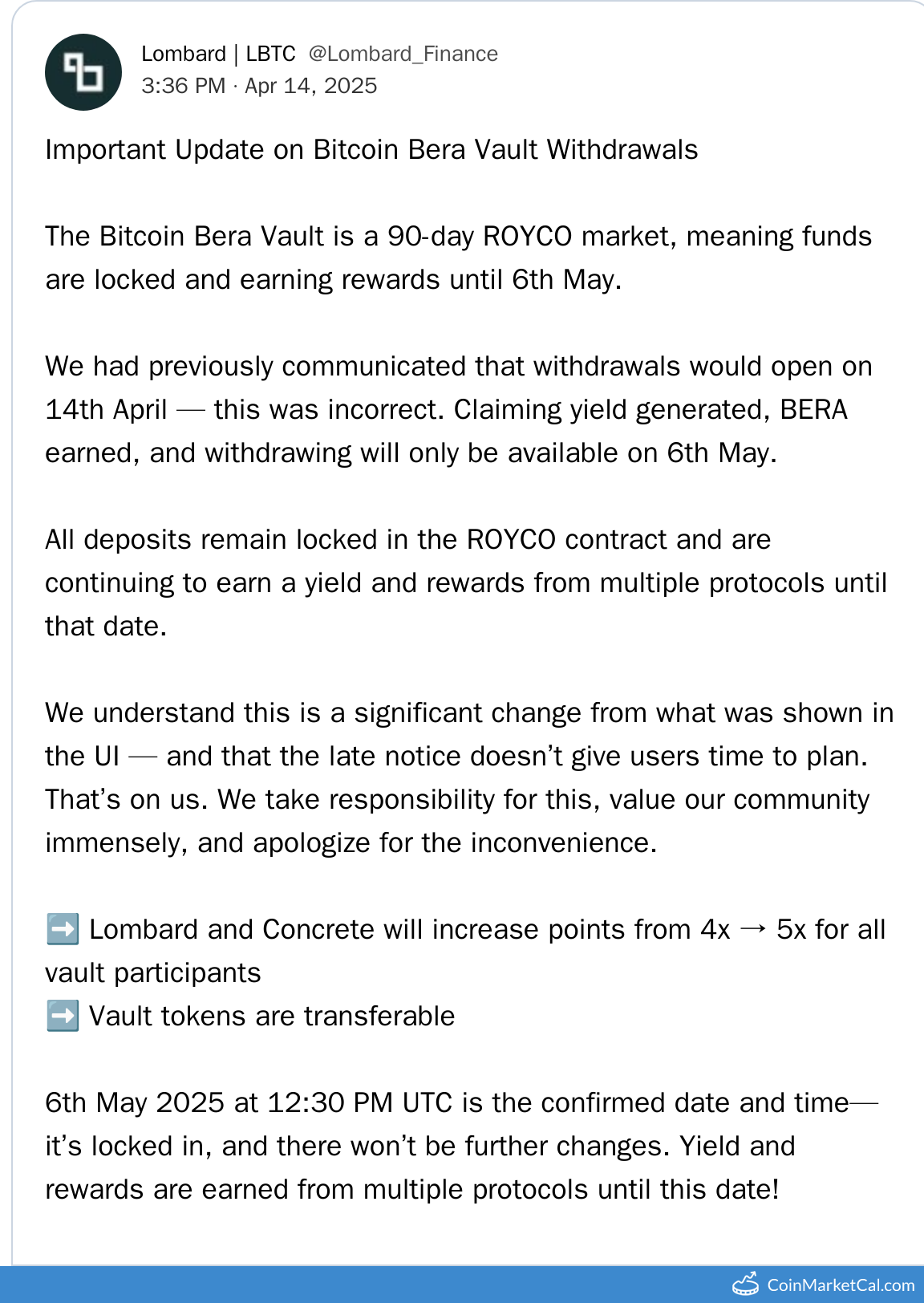 Bera Vault Updates