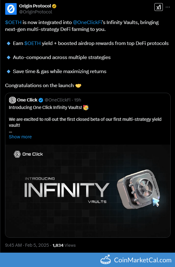 Kryptowaluty: Origin Dollar (OUSD) , Origin DeFi Governance (OGV) , Origin Ether (OETH) , Origin Token (OGN) , Origin Sonic (OS) , Staked OGN (XOGN)
