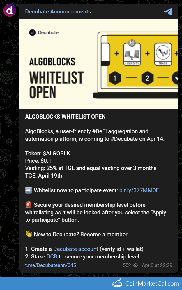 Kryptowaluty: Decubate (DCB)