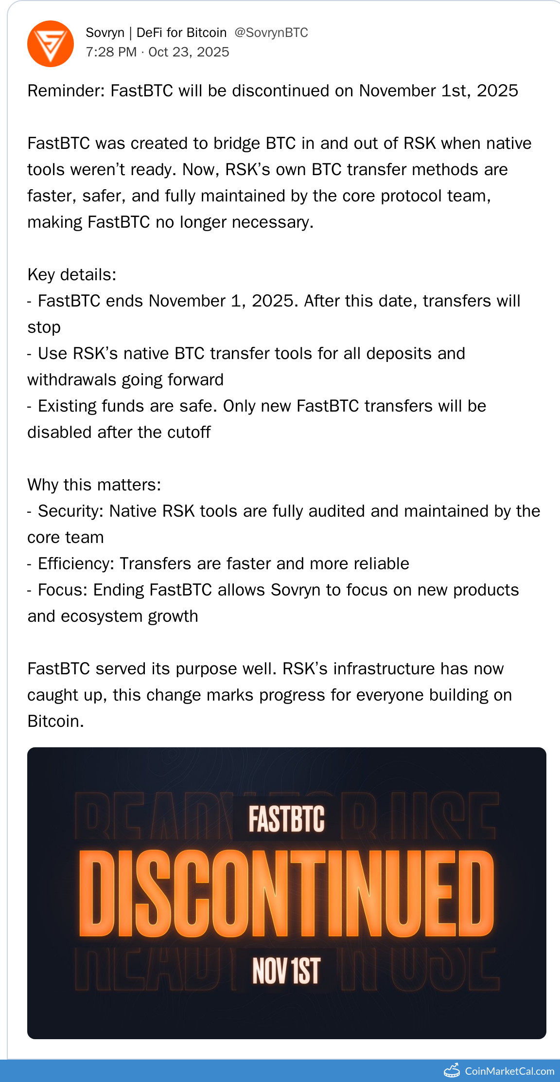 FastBTC Service Ends
