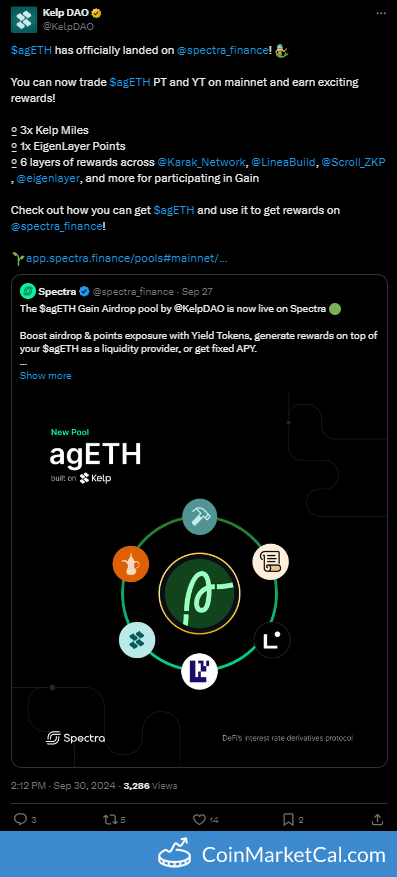 Kryptowaluty: Spectra (APW) , Kelp DAO (KELP) , Kelp Earned Points (KEP) , Kelp Gain (AGETH)