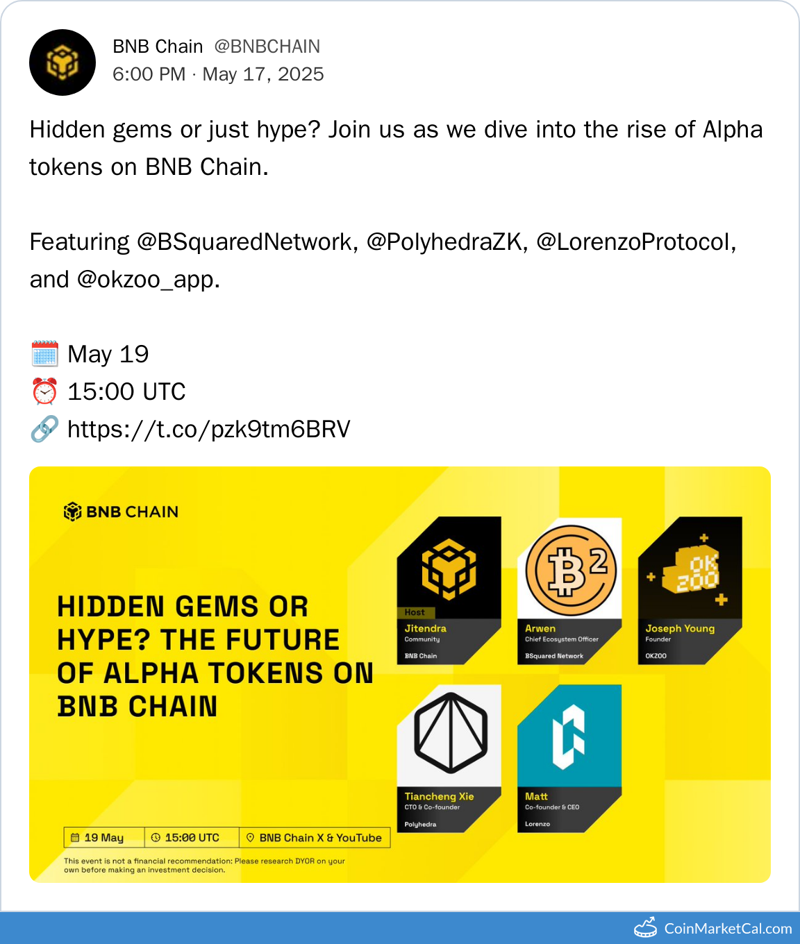 Kryptowaluty: BNB (BNB) , BSquared Network (B2) , Lorenzo Protocol (BANK) , OKZOO (AIOT) , Polyhedra Network (ZKJ)