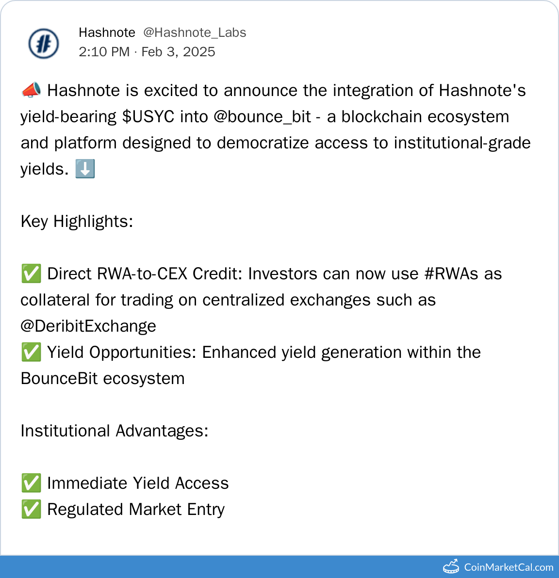 Kryptowaluty: Bounce (AUCTION) , BounceBit (BB) , BounceBit BTC (BBTC) , BounceBit USD (BBUSD) , Hashnote USYC (USYC)