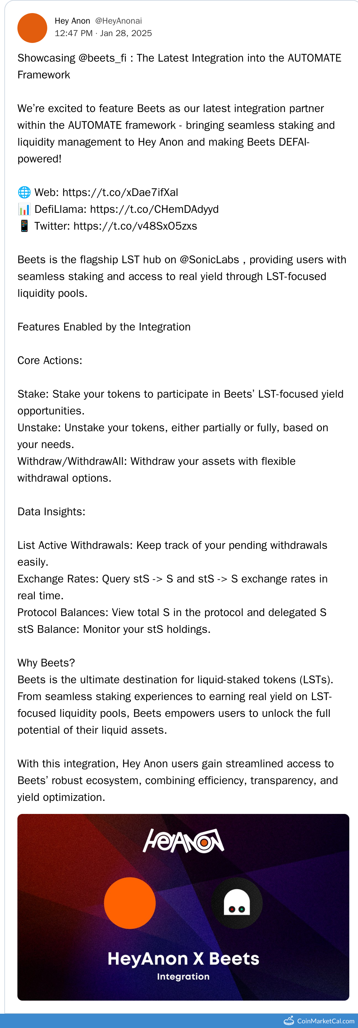 Kryptowaluty: Beets (BEETS) , Hey Anon (ANON)