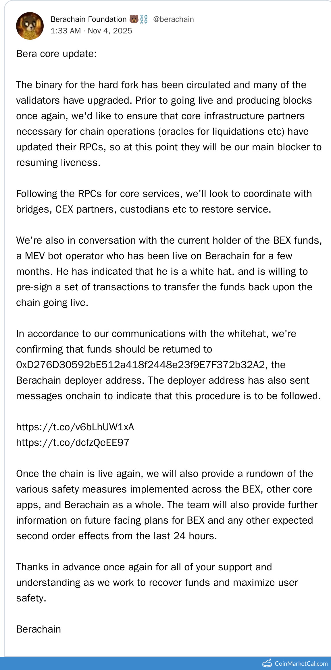 Wydarzenia Berachain BERA (BERA)