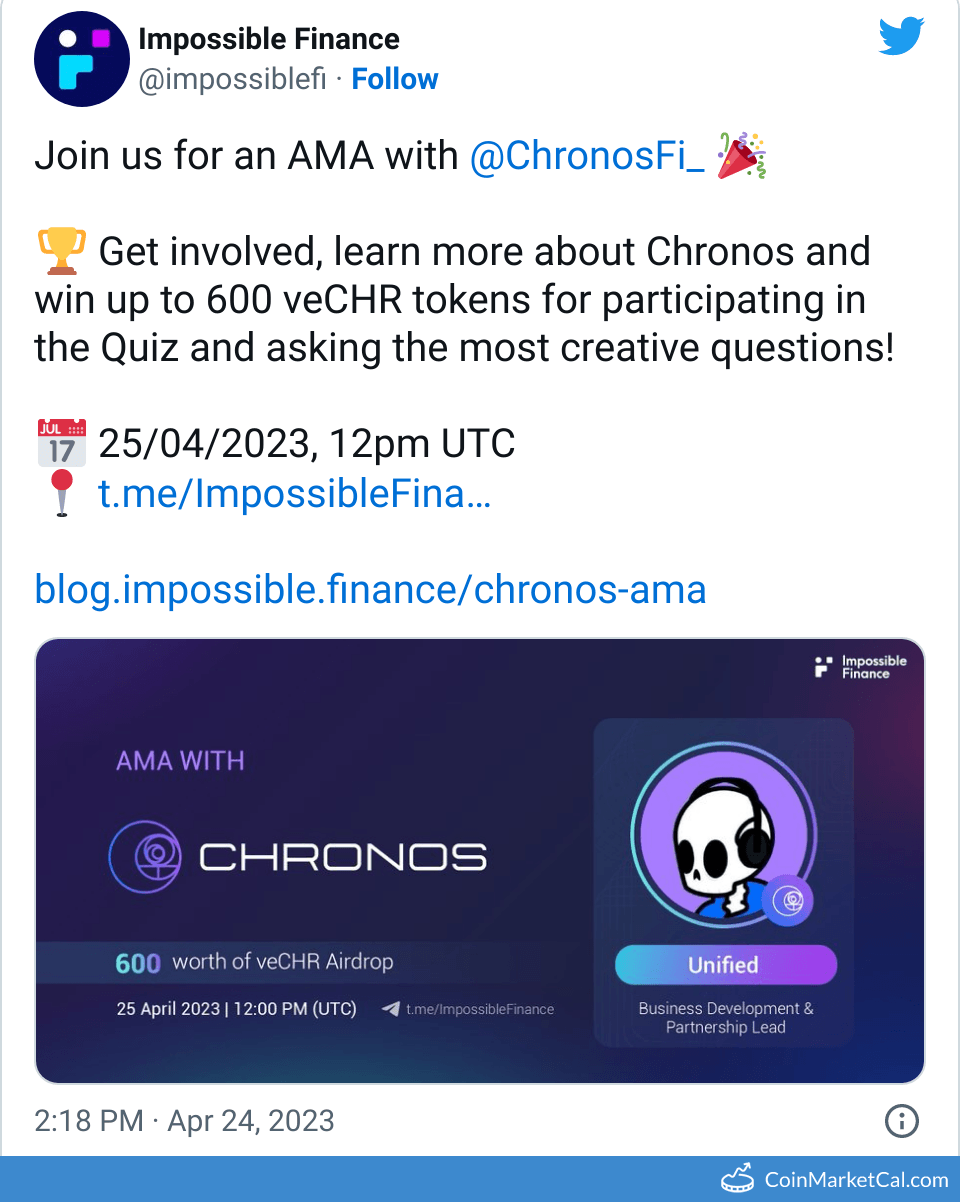 Kryptowaluty: Chronos Finance (CHR) , Impossible Finance (IF)