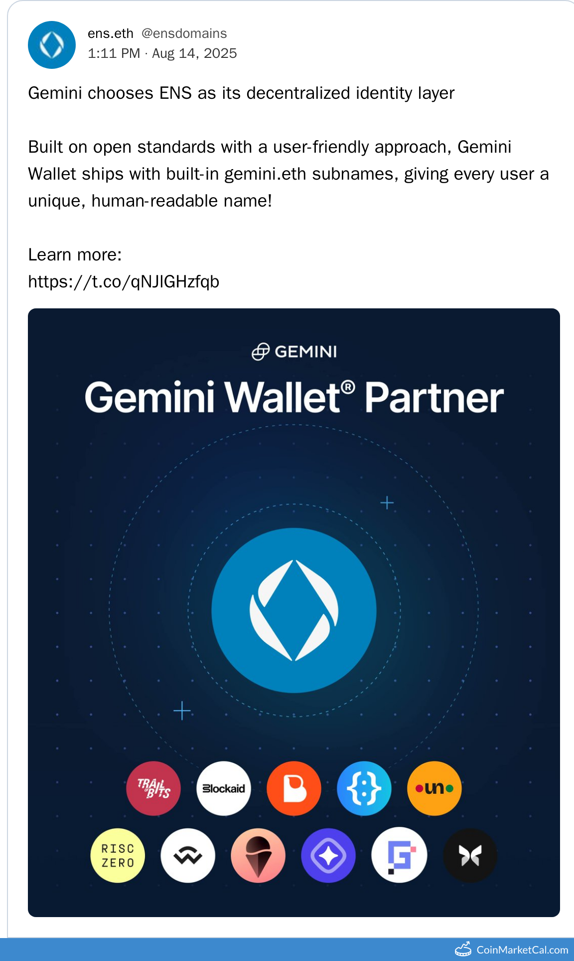 Gemini Integrates ENS