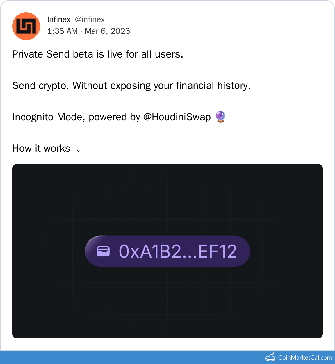 Kryptowaluty: Houdini Swap (LOCK) , Infinex (INX)