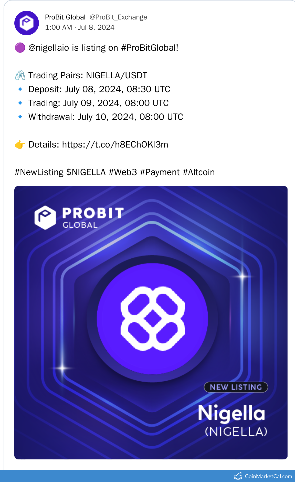 Kryptowaluty: Nigella Chain (NIGELLA) , Probit (PROB)