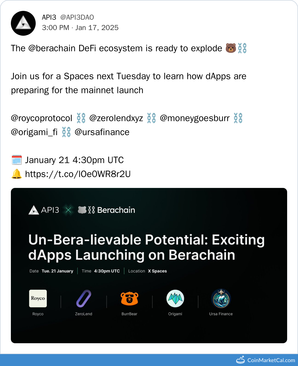 Kryptowaluty: API3 (API3) , Berachain BERA (BERA) , ONEZ (ONEZ) , ZeroLend (ZERO)
