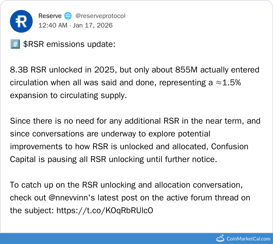 Wydarzenia Reserve Rights Token (RSR)