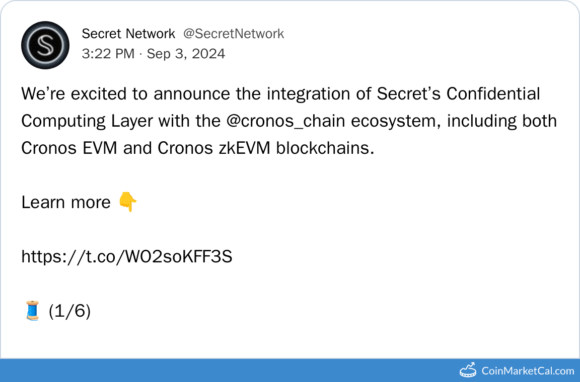 Kryptowaluty: Bridged Andromeda (SANDR) , Cronos zkEVM CRO (ZKCRO) , Cronos (CRO) , Secret (SCRT) , Stkd SCRT (STKD)
