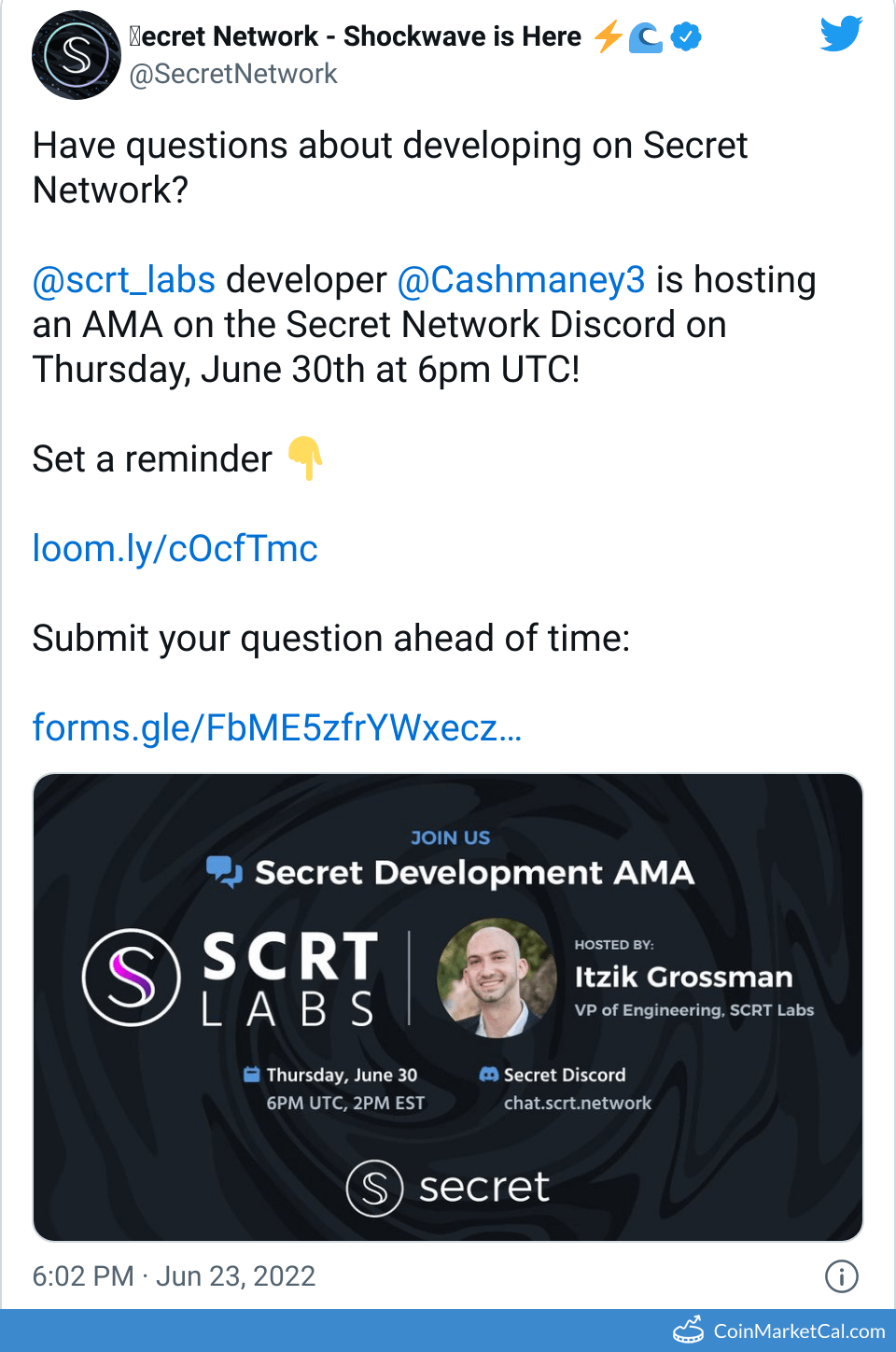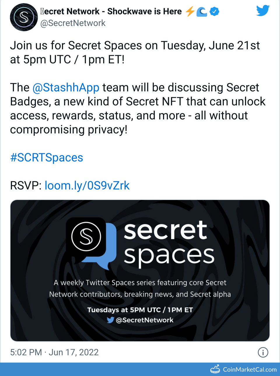 Kryptowaluty: Akash Network (AKT) , Cosmos Hub (ATOM) , General Event (CRYPTO) , Injective (INJ) , Kadena (KDA) , Osmosis (OSMO) , Quantstamp (QSP) , Secret (SCRT) , Shade Protocol (SHD) , THORChain (RUNE)