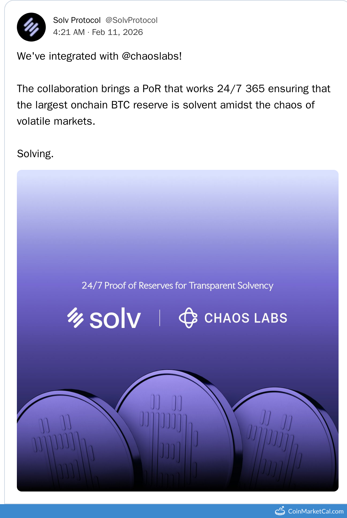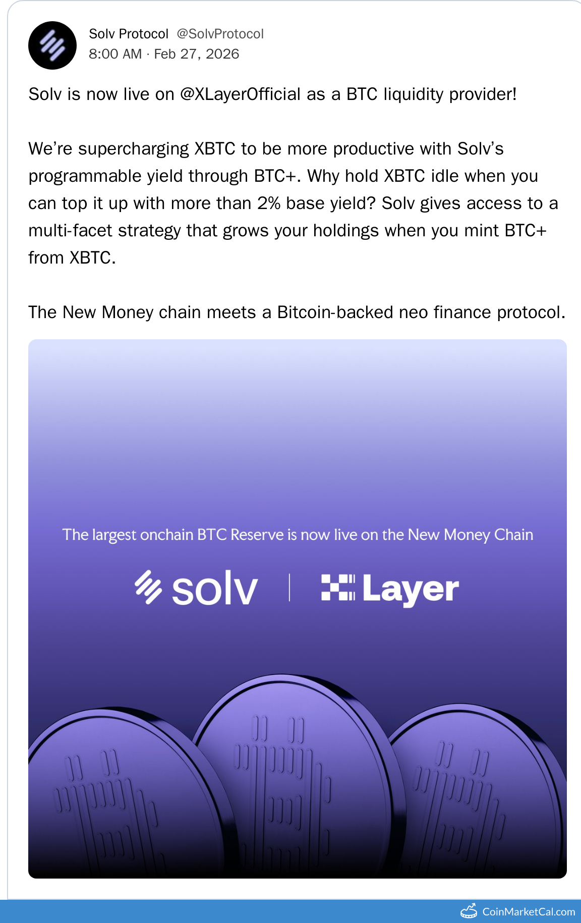 Kryptowaluty: Solv Protocol BTC (SOLVBTC) , Solv Protocol (SOLV) , Solv Protocol Staked BTC (XSOLVBTC) , Solv Protocol SolvBTC.BERA (SOLVBTC.BERA) , SolvBTC Trading Strategies Vault (SOLVBTC.TRADING) , Solv Protocol SolvBTC Jupiter (SOLVBTC.JUP)