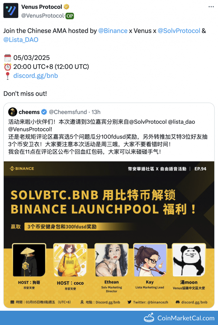 Kryptowaluty: Solv Protocol (SOLV) , Vai (VAI) , Venus (XVS) , Venus Reward Token (VRT)