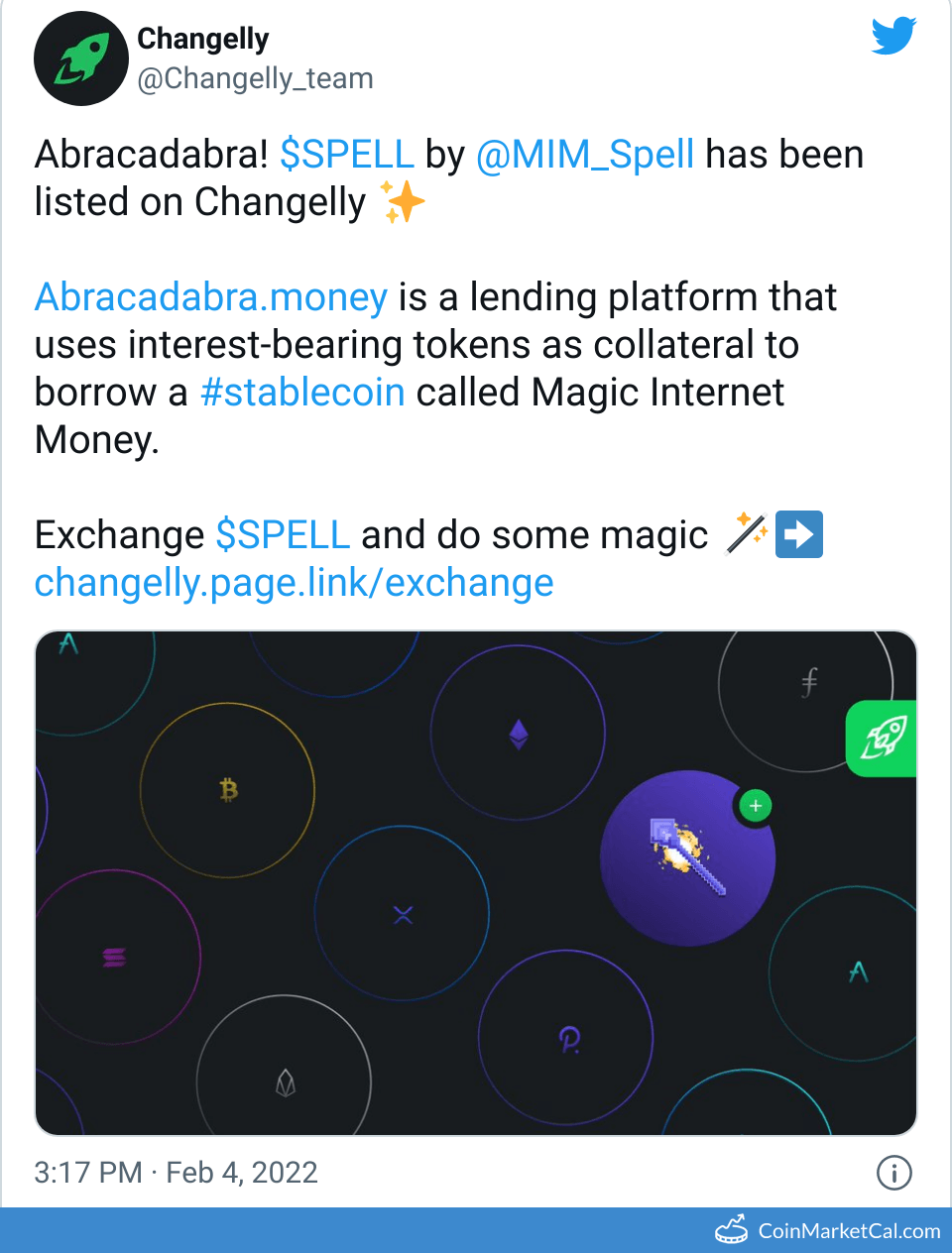 Kryptowaluty: Magic Internet Money (Ethereum) (MIM) , Magic Internet Money (Arbitrum) (MIM) , Magic Internet Money (Avalanche) (MIM) , Magic Internet Money (Base) (MIM) , Magic Internet Money (Blast) (MIM) , Magic Internet Money (BSC) (MIM) , Magic Internet Money (Fantom) (MIM) , Magic Internet Money (Kava) (MIM) , Magic Internet Money (Linea) (MIM) , Magic Internet Money (Moonriver) (MIM) , Magic Internet Money (Optimism) (MIM) , Magic Internet Money (Polygon) (MIM) , MagicGLP (MAGICGLP) , Spell (SPELL)