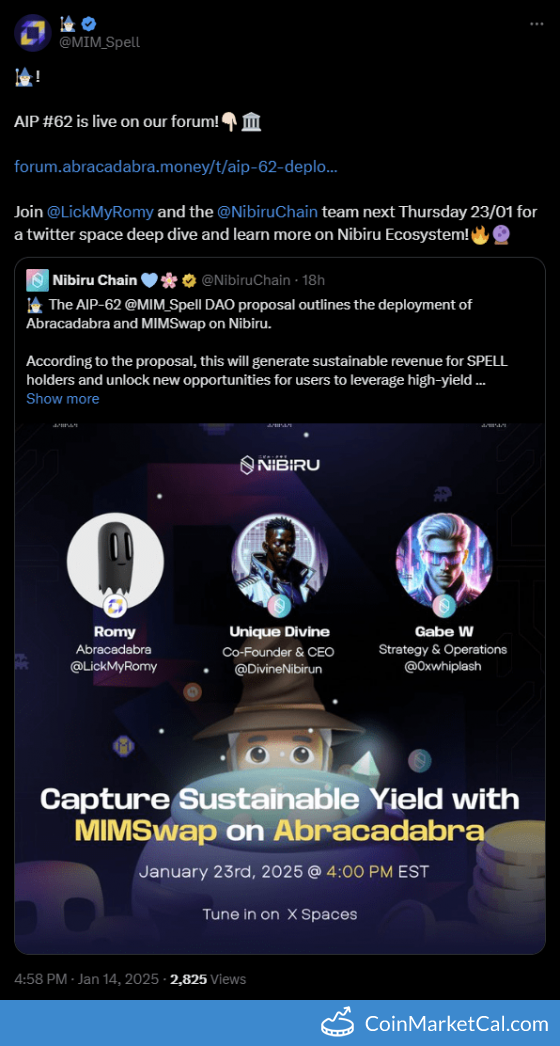 Kryptowaluty: Magic Internet Money (Ethereum) (MIM) , Magic Internet Money (Arbitrum) (MIM) , Magic Internet Money (Avalanche) (MIM) , Magic Internet Money (Base) (MIM) , Magic Internet Money (Blast) (MIM) , Magic Internet Money (BSC) (MIM) , Magic Internet Money (Fantom) (MIM) , Magic Internet Money (Linea) (MIM) , Magic Internet Money (Moonriver) (MIM) , Magic Internet Money (Optimism) (MIM) , Magic Internet Money (Polygon) (MIM) , Nibiru (NIBI) , Spell (SPELL)