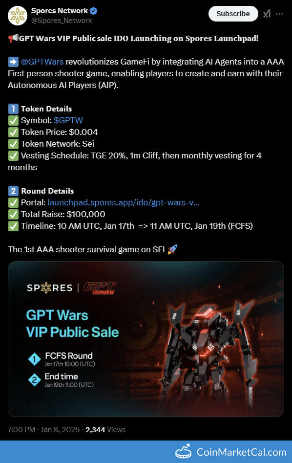 Kryptowaluty: GPT Wars (GPTW) , Spores Network (SPO)