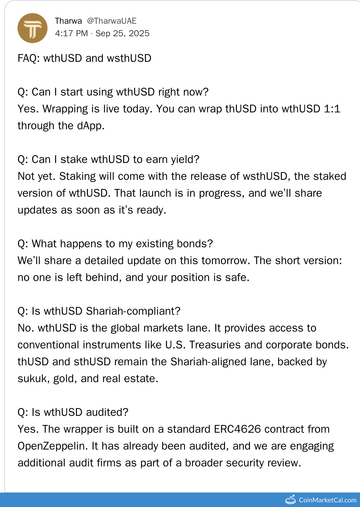 Kryptowaluty: Staked Tharwa USD (STHUSD) , Tharwa (TRWA) , Tharwa USD (THUSD)