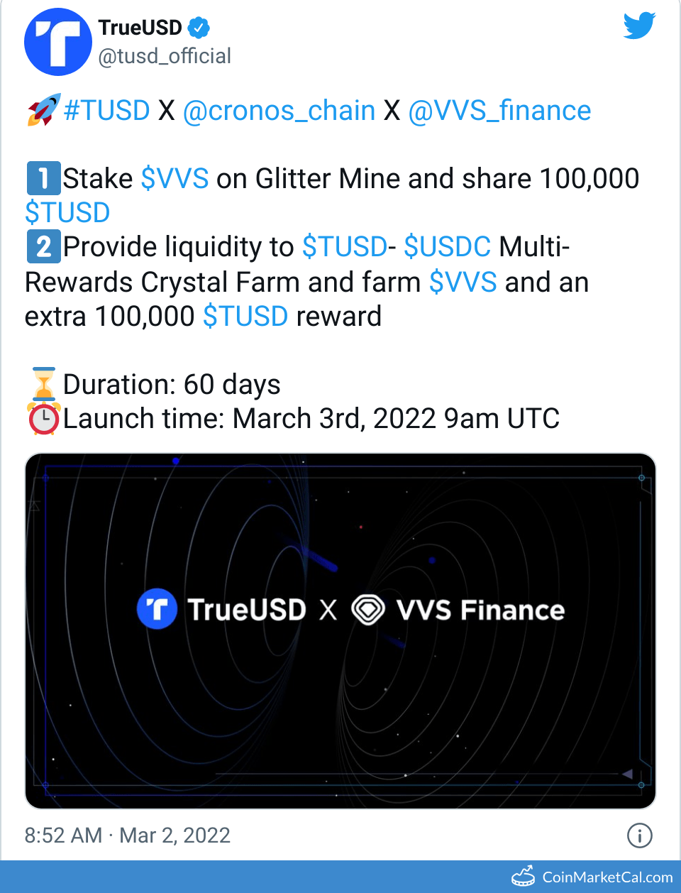 Kryptowaluty: TrueUSD (TUSD) , VVS Finance (VVS)