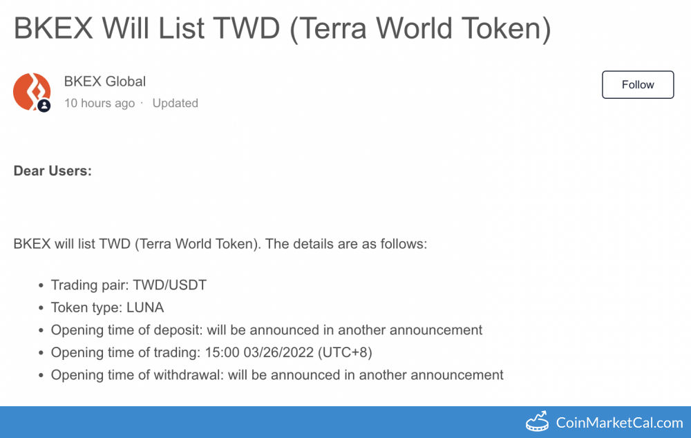Wydarzenia Terra World Token (TWD)