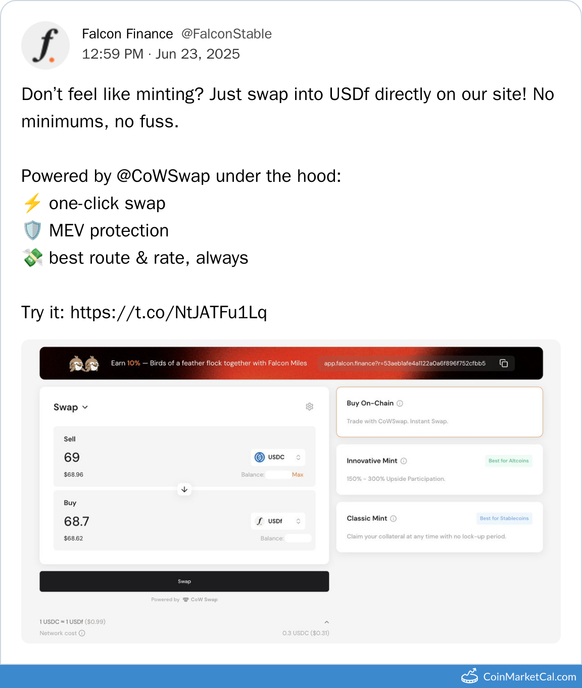 Kryptowaluty: Falcon USD (USDF) , Merlin's Seal BTC (M-BTC)