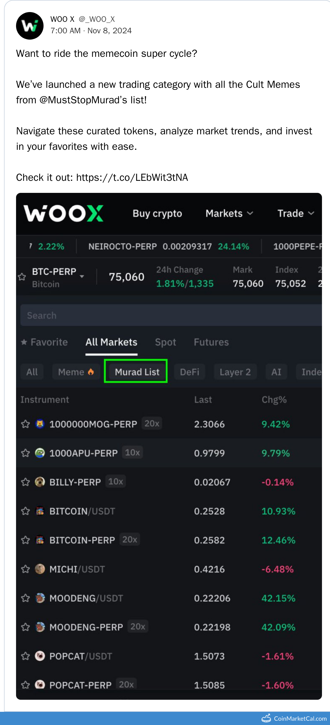 Kryptowaluty: cat in a dogs world (MEW) , WOO (WOO)