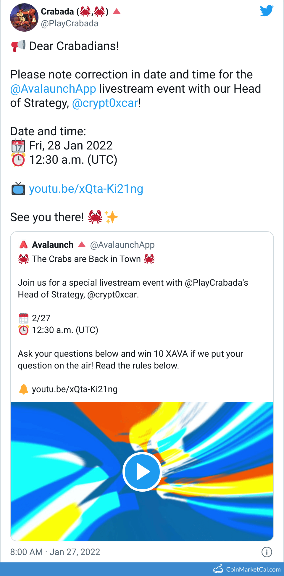 Kryptowaluty: Avalaunch (XAVA) , Crabada (CRA)