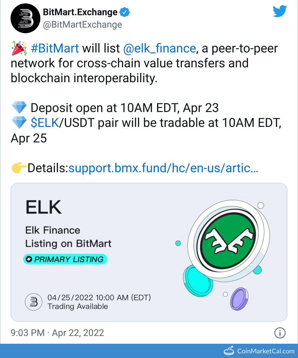 Wydarzenia Elk Finance (ELK)